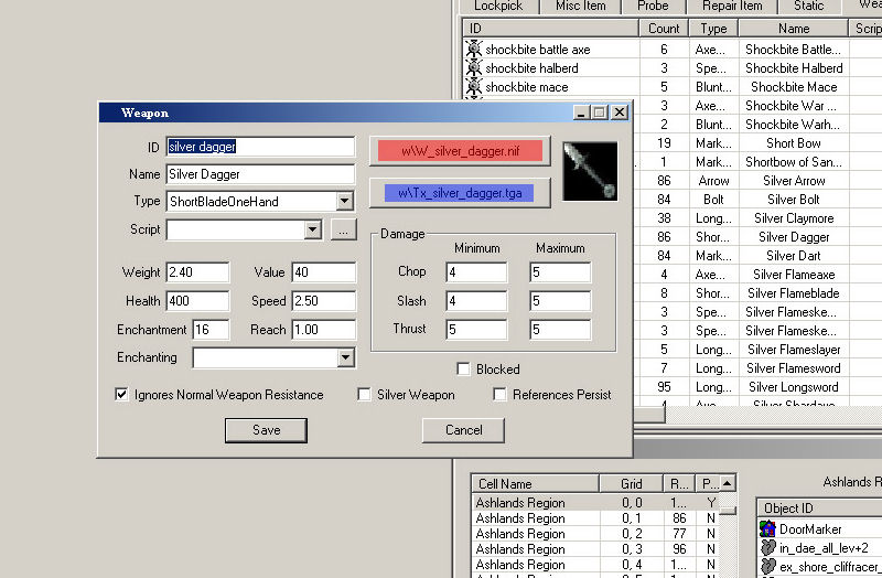 Lets say we want to edit the Silver Dagger in Morrowind.