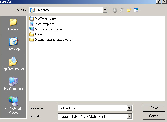 Anyway, go to file and save as, but DON’T choose BMP this time. Since we want just the icon and not the other white stuff around it, we shall select either dds or tga (note that dds needs a plugin).